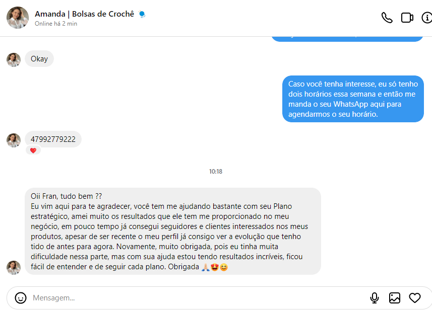 Olá, sou Franciely Chagas, gestora de projetos digitais. Auxilio empresas a se posicionarem de forma estratégica nas redes sociais, aplicando ações de marketing que aumentam vendas e visibilidade. Com soluções personalizadas, meu foco é gerar engajamento e resultados concretos.